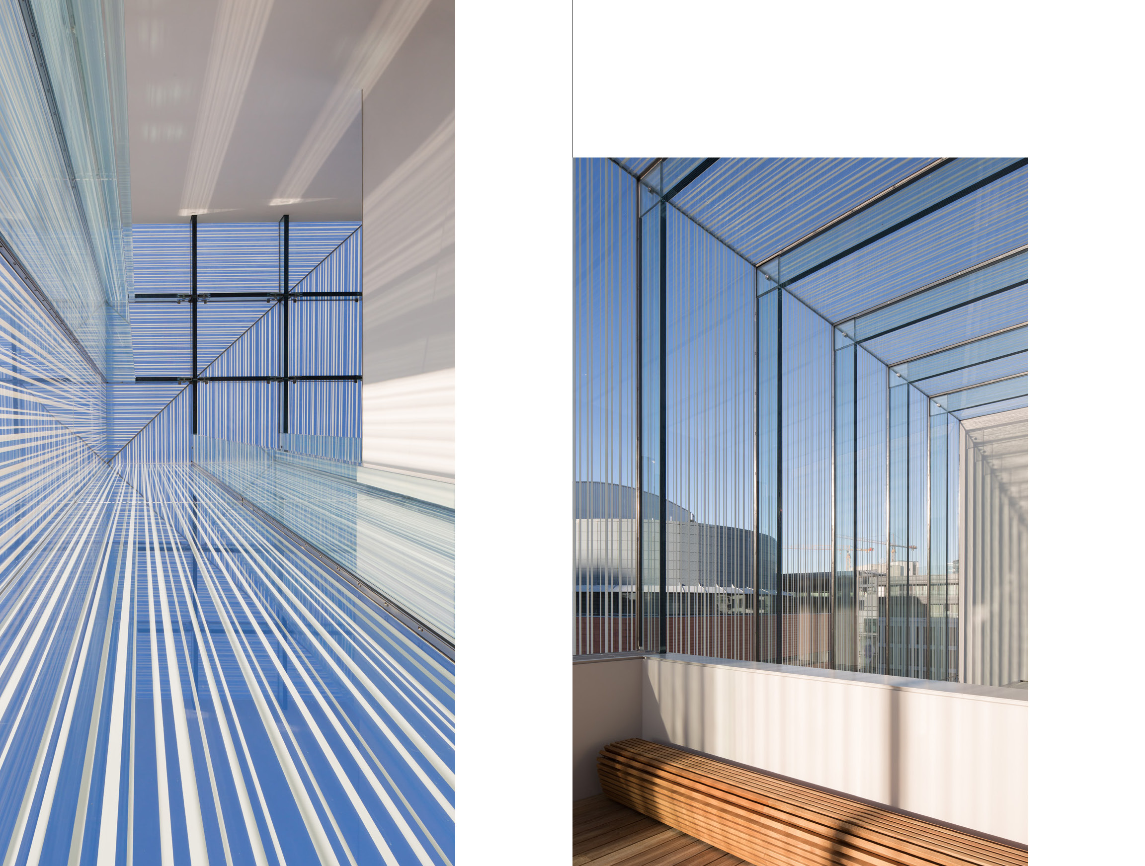 How can we make the history of a continent and that of an idea spatially sensitive? The mission, entrusted to Chaix & Morel et Associés and JSWD Architekten, was coupled with a second challenge: to make the transplant of this "place where the European idea comes to life" take place by transforming the Art Deco building into a new cultural building. Designed as "a showcase for Europe", the all-glass volume, up to its original structure designed with the engineer and architect Werner Sobek, reveals behind its silkscreened façade the random floating of opaque prisms that the fluidity of the interior path allows to travel freely.