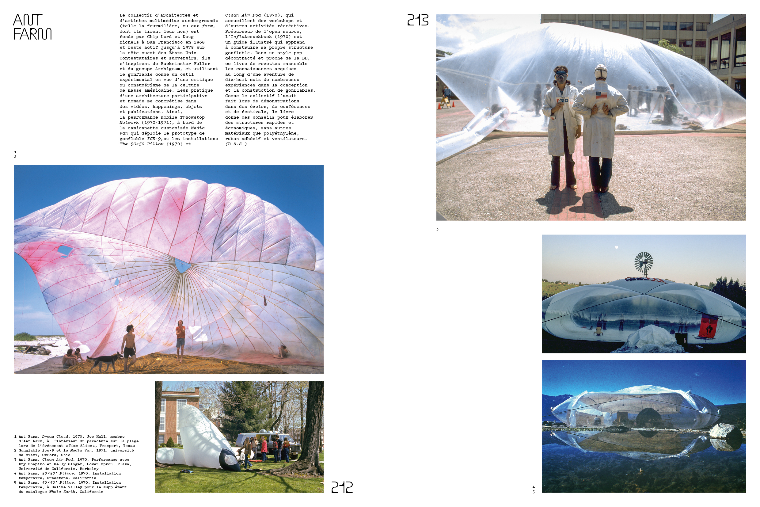 Des premières exploitations industrielles et militaires aux œuvres et happenings réalisés par de nombreux artistes, designers et architectes, Aerodream - Architecture, art, design et structures gonflables retrace une histoire du gonflable et du pneumatique des années 1950 à nos jours. Publié à l’occasion des expositions au Centre Pompidou-Metz et à la Cité de l’architecture & du patrimoine, Aeorodream, propose une archéologie critique du gonflable illustrée par une riche iconographie - avec plus de 200 artistes et architectes présentés - articulée en six parties autour de deux essais et complétée par une chronologie et une bibliographie raisonnée.