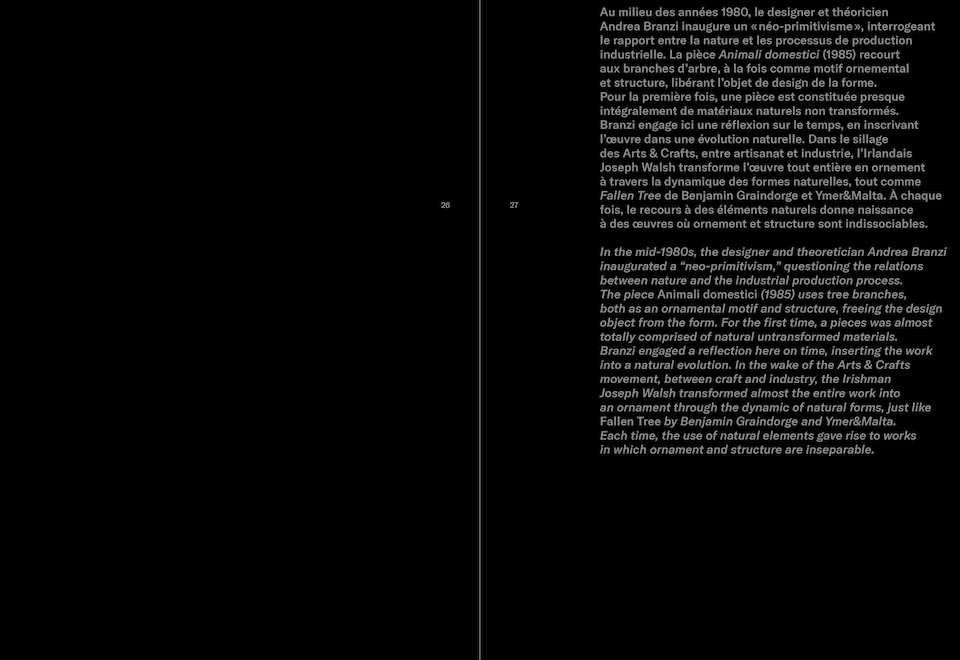 La notion d'ornement en design s'inspire des arabesques, des motifs et des systèmes décoratifs de la nature. En associant ces formes aux nouvelles technologies et aux nouveaux matériaux, le design se naturalise et se métamorphose.