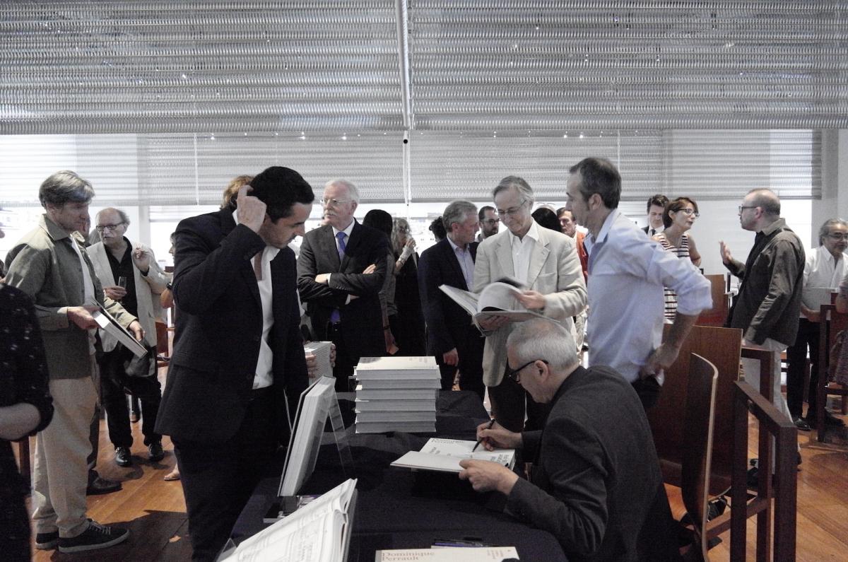 Laurence Engel (Présidente de la BnF), Dominique Perrault, Laurent Dumas (Président d'Emerige), Les Éditions HYX ont présenté le 19 juillet La Bibliothèque nationale de France - Dominique Perrault - Portrait d'un projet (1988-1998), ouvrage qui a donné lieu à de nombreuses dédicaces de l'architecte.