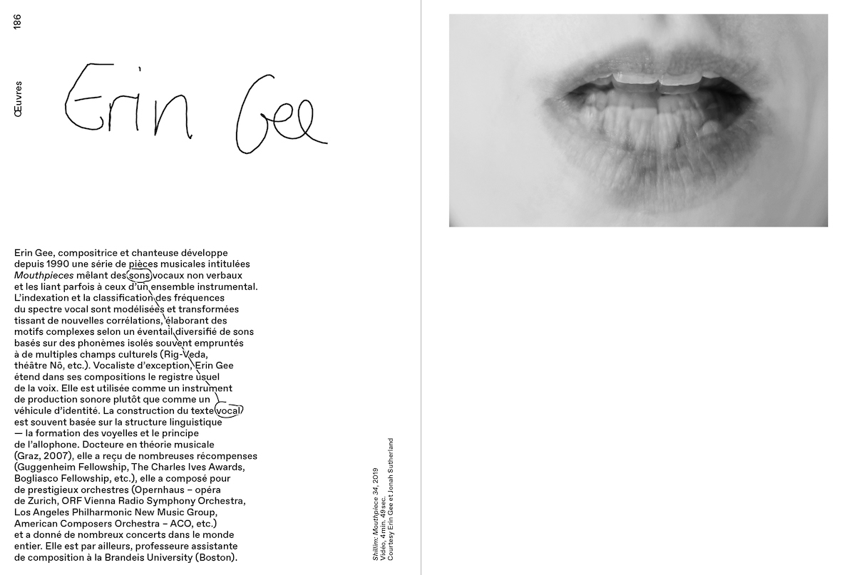 Erratum : Une malencontreuse erreur s’est produite dans l’édition du catalogue Neurones, les intelligences simulées p. 186. Le texte consacré à la compositrice américaine Erin Elizabeth Gee, dite Erin Gee, mentionne des oeuvres et fait référence au travail de l’artiste canadienne Erin Gee. Vous trouverez la page corrigée ci-dessus, dans les extraits et les ressources ainsi que le lien vous permettant de découvrir le travail de l’artiste canadienne autour du son, des nouveaux médias et de la composition musicale qui articule les matériaux du corps humain et de la voix grâce à des technologies interactives et émergentes. Les Éditions HYX présentent leurs plus sincères excuses à l'artiste canadienne Erin Gee, au centre d'arts numériques de Montréal perte de signal et à son directeur général et artistique Robin Dupuis, et invitent les lecteurs à imprimer la nouvelle page sur notre site et à l'insérer dans l'ouvrage.