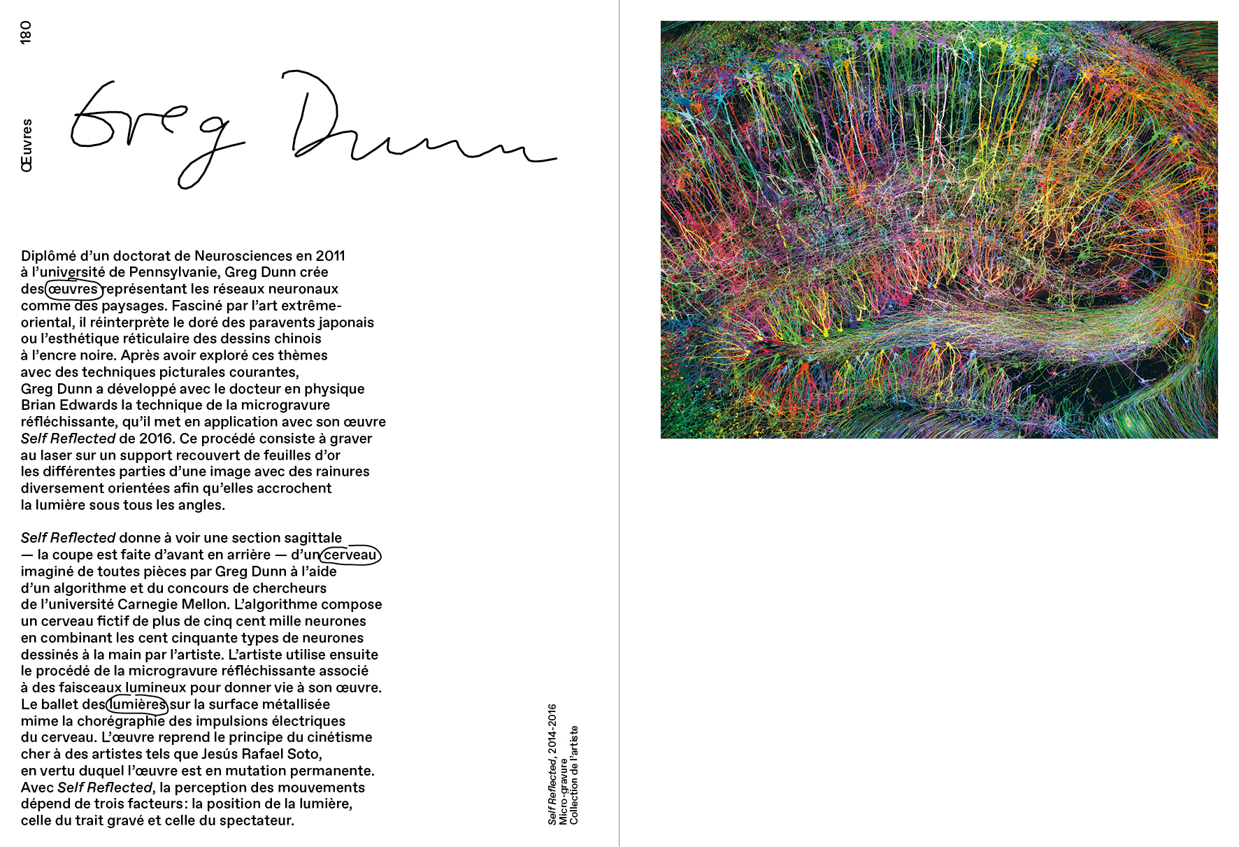 43 L’OBJET CERVEAU 46 Graphe 48 Timeline 55 "Corrélations, les intelligences simulées", par Frédéric Migayrou 71 L’INTELLIGENCE DES JEUX 74 Graphe 76 Timeline 81 "Un cerveau plastique" par Camille Lenglois 91 CYBER-ZOO 94 Graphe 96 Timeline 101 "Pourquoi des tortues ?" par Pierre Cassou-Noguès 109 EXTENDED MINDS 112 Graphe 114 Timeline 117 "Court-circuit, les neurones psychédéliques" par Pascal Rousseau 125 DEEP LEARNING — ARBRES, RÉSEAUX NEURONAUX 128 Graphe « Arbres » 130 Timeline « Arbres » 136 Graphe « Réseaux neuronaux » 138 Timeline « Réseaux neuronaux » 143 "Arborescences, graphes, réseaux, algorithmes" par Daniel Parrochia" 151 OEUVRES 152 Amazon 154 Refik Anadol 156 Gérard Assayag, Marc Chemillier et Jérôme Nika 158 Otto Beckmann 160 Hicham Berrada 162 Blue Brain Project 164 R. Bottazzi et T. Varoudis 166 Jack Burman 168 Certain Measures, Andrew Witt et Tobias Nolte 170 Matthieu Cherubini 172 H. Cuntz et M. Weigand 174 Pierre Cutellic 176 DeepMind 178 doubleNegatives Architecture 180 Greg Dunn 182 Dunne & Raby 184 E+K — Élise Gay et Kévin Donnot 186 Erin Gee 188 Catherine Griffiths 190 Brion Gysin 192 Zaha Hadid Architects 194 Pascal Haudressy 196 Haus-Rucker-Co 198 Mario Klingemann 200 Ugo La Pietra 202 William Latham 204 Alvin Lucier 206 Jonas Lund 208 Daito Manabe + Kamitani Lab 210 Maxime Matthys 212 Philippe Morel 214 Wangechi Mutu 216 NeuroSpin 218 Gordon Pask 220 Julien Prévieux 222 Casey Rehm 224 Anna Ridler 226 Nicolas Schöffer 228 Diemut Strebe 230 Superstudio 232 Stan Vanderbeek 234 Lu Yang 236 Bibliographie