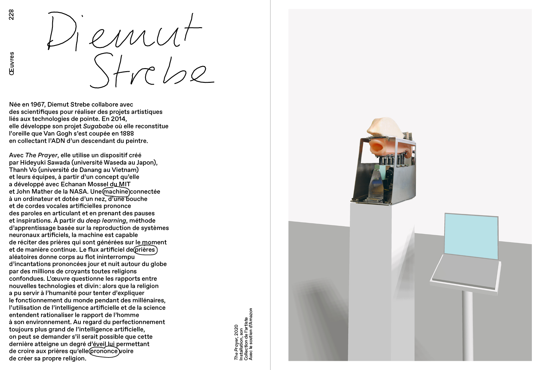 Les œuvres et travaux d’une quarantaine de créateurs (artistes, architectes, ingénieurs ou scientifiques) ouvrent de nouvelles perspectives sur l’usage massif des datas, initiant une approche inédite des processus de création, et imposant une vision critique des champs d’applications ouverts par l’intelligence artificielle. Une bibliographie de plus de 300 références complète la publication.